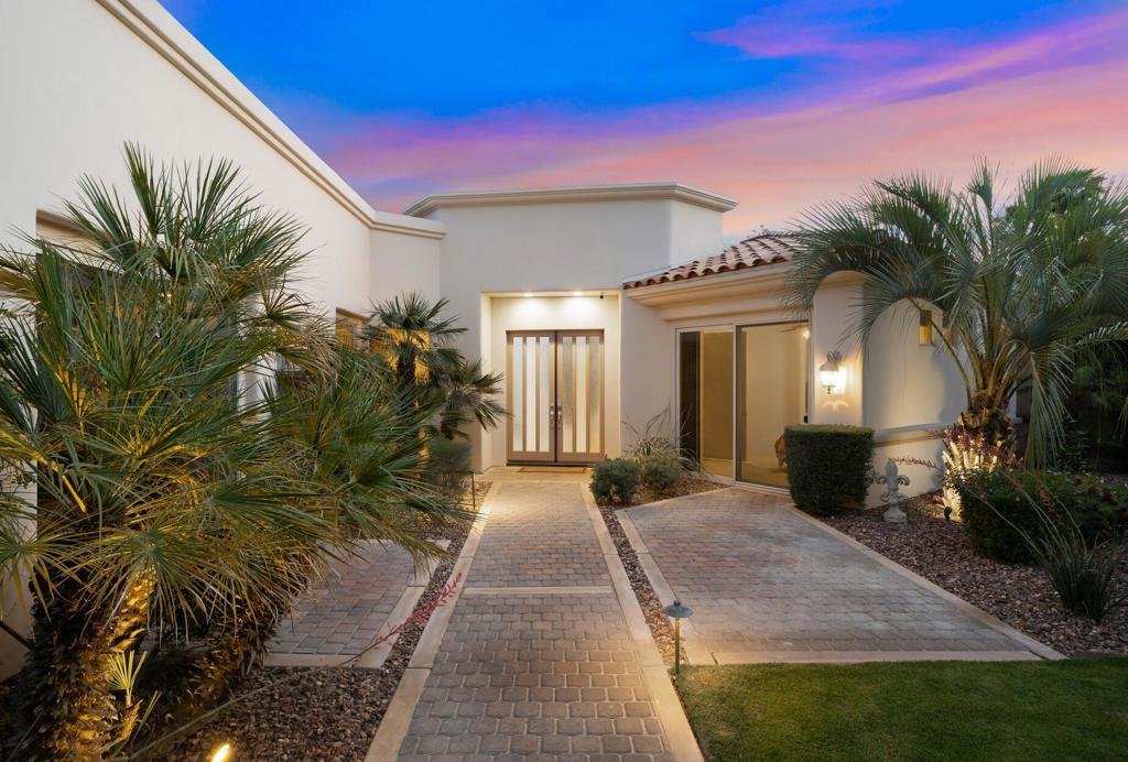 Price Reduced for immediate sale | Carrera Estates | A small, gated community situated in Central Rancho Mirage minutes from Eisenhower Medical Center, Shopping and Fine Dining and Freeway close. Built by Keenan Development and situated at the end a quiet cul-de-sac on a nice large 13,000+SqFt Lot. Enter your beautifully landscaped privately courtyard, which leads you to double entry doors. Inside you will enjoy stone floors, high volume ceilings and direct pool view and access. Both formal and informal living spaces offer living and dining room with Fireplace, wonderful for entertaining guests, opposite side, informal space with fireplace, wet-bar, breakfast area, beautiful open light and bright kitchen all overlooking your outdoor kitchen and fully custom paved side yard. You will love the spacious primary suite with sitting area, direct and very private pool and patio access., 2 large walk-in closets and luxurious bath offering opposite side vanity's, soaking tub and custom glass block shower.There are two junior suites opposite sides of house offering quiet privacy and direct courtyard patio access, one is outfitted as home theater which can easily be removed for bedroom use. Three car garage with one bay converted to air-conditioned space, easily converted back to garage bay if needed. Carrera Estates is a small popular community due to its custom designed homes, so close to everything. Once you are there, naturally, you will love this home.
