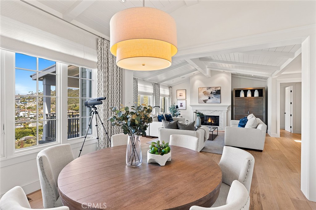 Perched atop the hills of the coveted Lower Temple Hills enclave, this stunning home offers breathtaking panoramic views of the ocean, coastline, and mesmerizing sunsets. Designed by Tim Nicol, this exceptional residence seamlessly blends timeless elegance with modern functionality. Inside, the home is adorned with exquisite details, including custom solid ash cabinetry, automated shades and draperies, a full-house security system, and high-end finishes throughout. Distressed wood floors, open-beam cathedral ceilings, crown molding, and recessed lighting add to the home's sophisticated charm. The living room, anchored by a marble fireplace, features a wall of French doors that open to a serene portico, perfect for enjoying the picturesque surroundings. A second fireplace warms the inviting family room, which boasts custom built-in bookcases and French doors leading to another tranquil outdoor space. The kitchen is a chef's dream, outfitted with professional-grade stainless steel appliances, custom cabinetry, Rohl fixtures, and luxurious Carrara marble countertops. The primary suite is a private retreat, featuring a spa-inspired bathroom with Carrara marble accents, a deep soaking tub, a spacious glass-enclosed shower, Rohl fixtures, and dual sinks. Two additional en-suite bedrooms provide comfort and privacy for guests or family members. Beyond the professionally landscaped grounds--complete with olive and fruit trees and drought-tolerant foliage--lies one of the most captivating views in Laguna Beach. This remarkable home is a true gem, offering the perfect blend of luxury, tranquility, and coastal beauty.